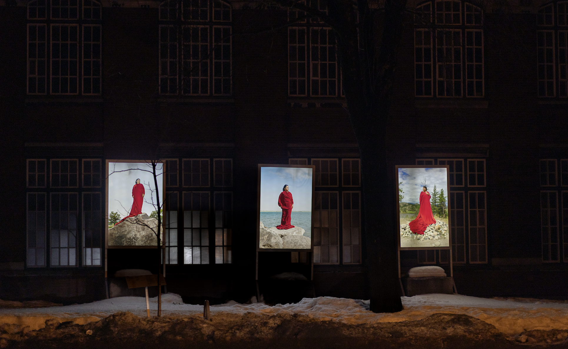At the Lévis terminal, a key photographic work by Lori Blondeau continues the Biennale’s exploration of Indigenous identity and feminist critique.